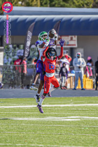 While his offensive burst turned heads, his growth at cornerback may have been even more impressive. In the Showcase game, Green showed true 5-star upside in the secondary. After getting beat on a deep route, he didn’t panic—he stayed composed, located the receiver, used his makeup speed, and came away with a momentum-shifting interception. That sequence alone displayed maturity, resilience, and elite recovery ability.