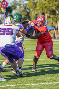 Lining up at running back in both the scrimmage and Showcase game, Glenn embraced contact and thrived in traffic. His most impressive moment came on a rugged 21-yard touchdown run where he stiff-armed a defender, lowered his shoulder, and powered into the end zone. That play summed up his playing style—physical, fearless, and determined.