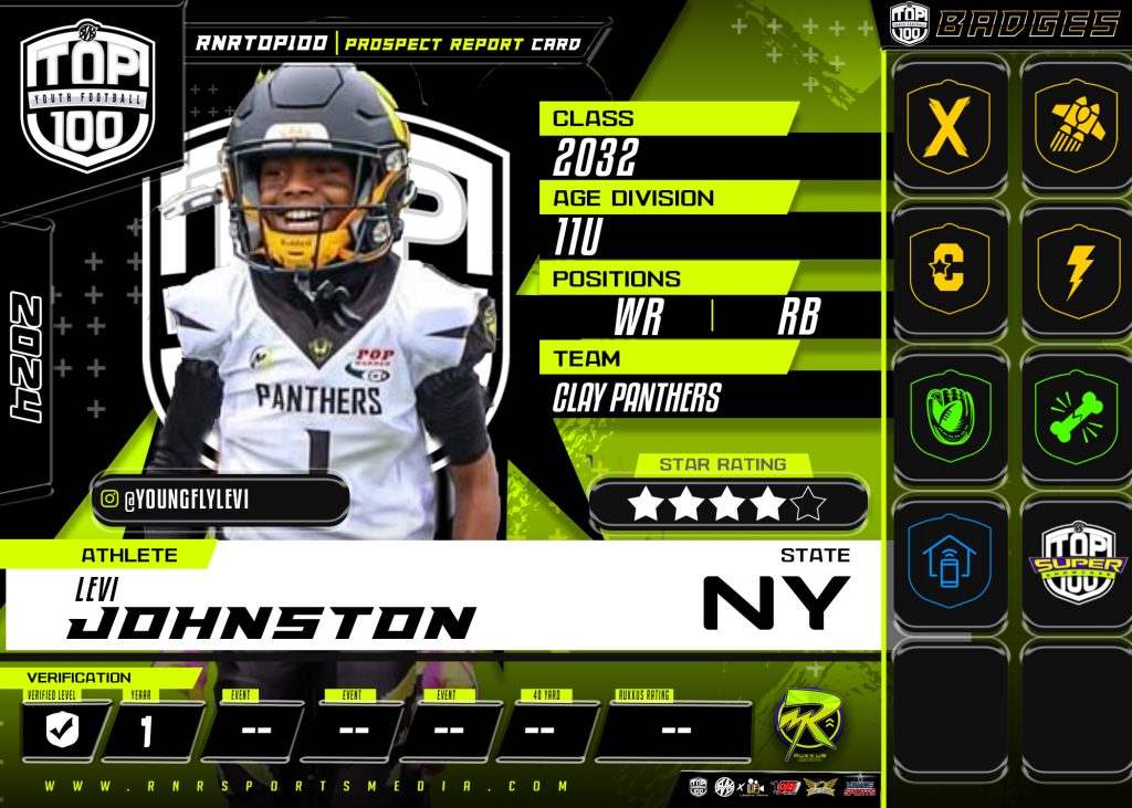 RNR Top 100 Prospect Report Name: Levi Johnston Position: WR Team : Clay Panthers (NY) 11U Class : 2032 Skinny: Levi Johnston is rewriting the narrative for youth football in New York. While the Empire State is often labeled a basketball hotbed, Johnston is part of a new wave of football talent proving that the […]