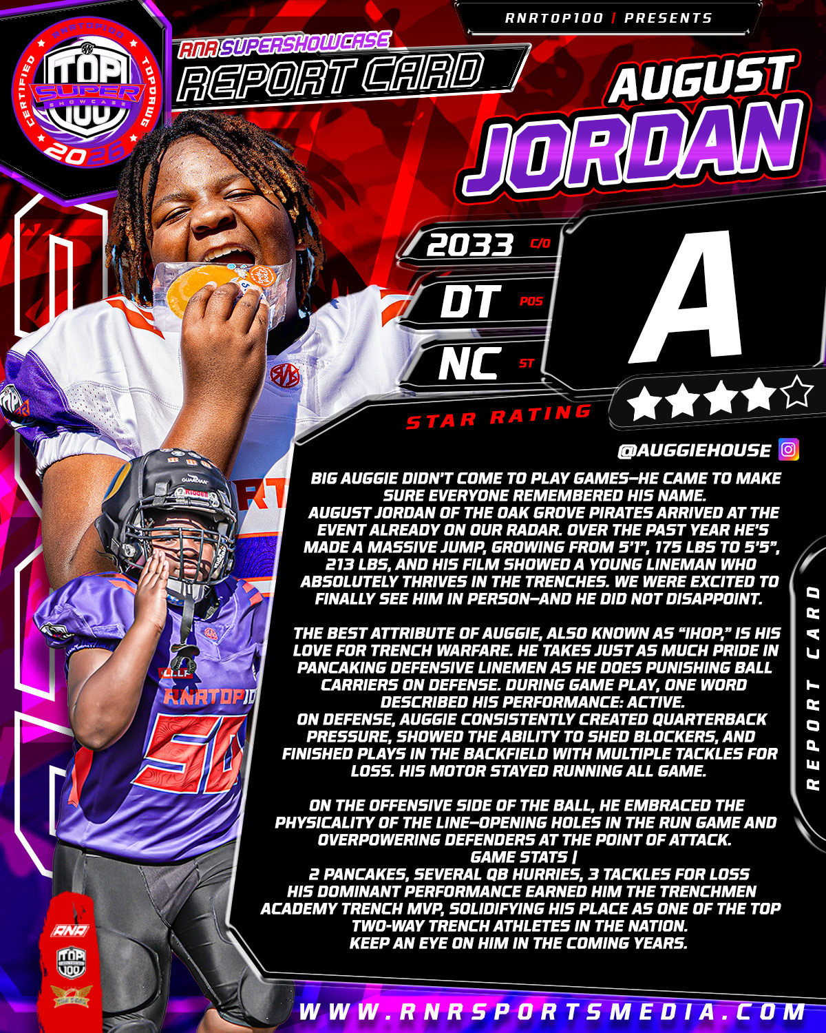 His dominant performance earned him the Trenchmen Academy Trench MVP, solidifying his place as one of the top two-way trench athletes in the nation.