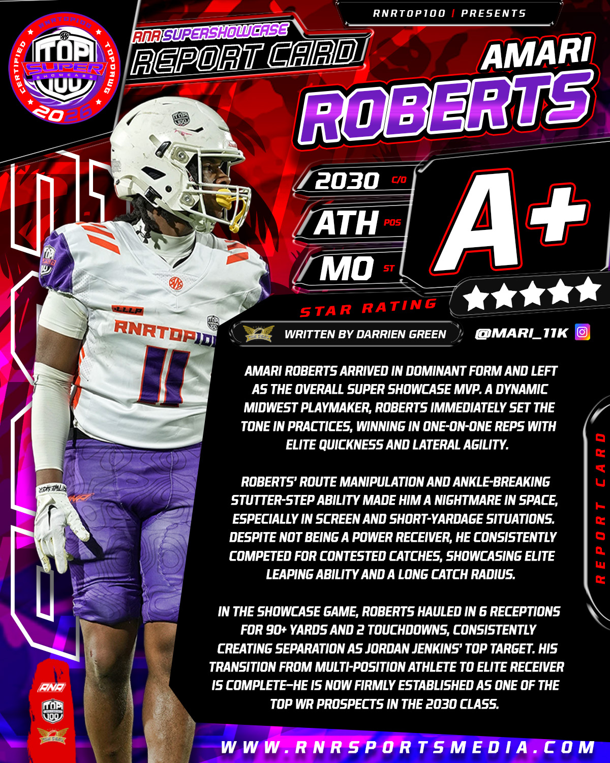 How did you do at RNR Super Showcase? Well order your report card and get an evaluation write up from Darrien Green of The Seal Sports or RNRCoachkatt of your performance at the RNR Super Showcase. (Must have participated at the 2026 RNR Super Showcase to be able to purchase this item)