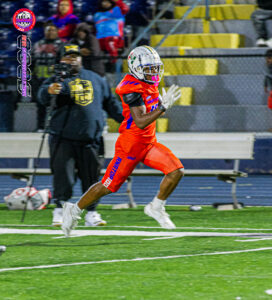 Chaney’s signature moment came in the Showcase game with a 64-yard touchdown run, demonstrating elite acceleration, footwork, and angle-breaking speed. His relentless running style explains the “Bull” nickname—he runs with violence, confidence, and urgency.